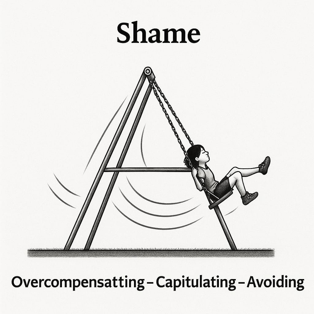 To illustrate how internalised shame perpetuates itself through oscillation between overcompensation, surrendering, and avoidance, consider the case of Sarah.