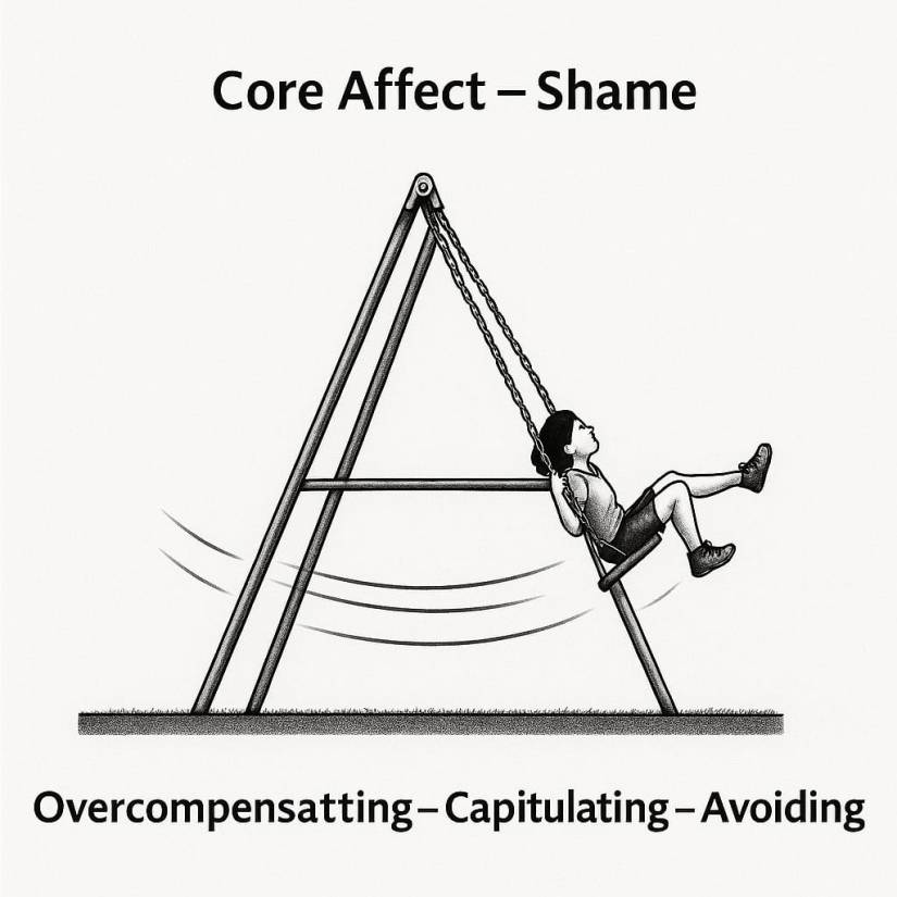 Avoidance is equally diverse. It can manifest as social withdrawal, chronic introversion, avoiding close relationships or intimacy, and even avoiding sex. On the surface, avoidance appears to be the opposite of overcompensation, yet these strategies often complement and reinforce each other – this is the essence of the oscillating effect. For example: โI overcompensate by being extremely provocative and flirtatious online, but in reality I avoid intimacy at all costs, because I fear being โfound outโ and humiliated.โ