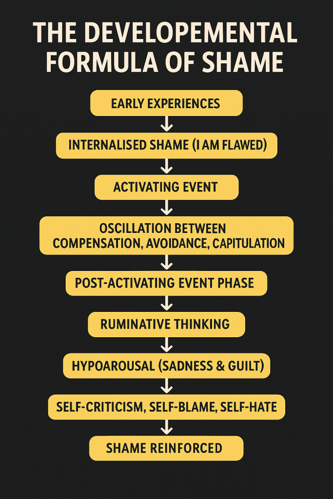 In this environment, a core affect of shame becomes installed. Shame functions as a predictive alarm: โIf I fail, I will be exposed, rejected, or humiliated.โ